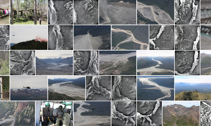 Kaskawulsh: Mosaic (det.), 2016. 65in x 140in. 9in x 9in photographs, National Air Photo Library; 9in x 13.5in photographs, Leslie Reid