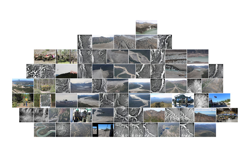 Yellowknife: Mosaic, 2016. 65in x 124in. 9in x 9in photographs, National Air Photo Library; 9in x 13.5in photographs, Leslie Reid