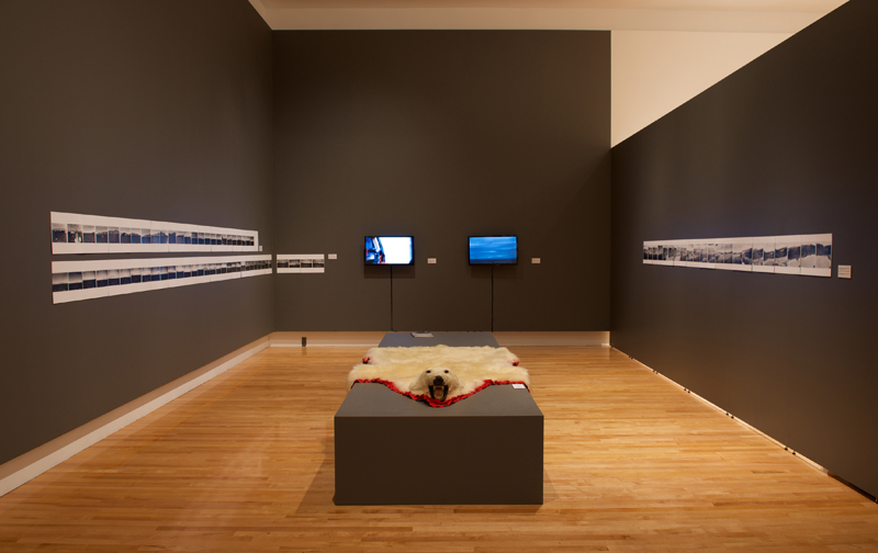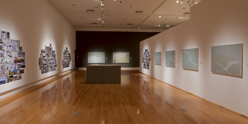Through historical photographs, contemporary photography, painting and video, Leslie Reid explores the complexities of the Canadian North and High Arctic revealing the entwined nature of defence, northern populations, and the environment. Mapping A Cold War examines several northern locations where difficult histories, military presence, sovereignty issues, scientific research, development pressures, and the magnified effects of climate change all play out in an extreme, unpredictable and fragile terrain. This exhibition is the result of Leslie Reid’s participation in the Canadian Forces Artist Program (CFAP). Through this residency, Reid travelled with the military throughout the North, following in the footsteps of her father who, as a young man with the Royal Canadian Air Force, flew photographic mapping missions in the early years of the Cold War. The first accurate maps of the North, produced as a result of the RCAF Photo Squadron’s aerial photographs, were used for both Cold War installations and economic development. The artist accessed these photographs at the National Air Photo Library in Ottawa and CFAP gave her the opportunity to take her own aerial photographs of many of the places visited by her father. Yukon and BC glaciers (Kaskawulsh, Llewellyn), Great Slave and Snap Lakes (Yellowknife) and the plateau and coast of Cornwallis Island (Resolute) can be seen in both Reid’s and the historical photos. From these experiences, Reid has created multifaceted works that are both exploration and palimpsest, uniting past and present. In considering the time span of sixty years between these two bodies of photo works and the paintings that unite them, the exhibition looks at several intertwined issues, past and present: displacement, refuge, survival, fragility and resilience, of places and peoples, and our relationship with the earth. The changing role of military activities in the North, especially with regard to arctic sovereignty, and the underlying push for commercial development are important undercurrents. But the environmental effects of global warming on the North are the most critical and urgent of all. Financial assistance from the Canada Council for the Arts, the Ontario Arts Council and the City of Ottawa is gratefully acknowledged.