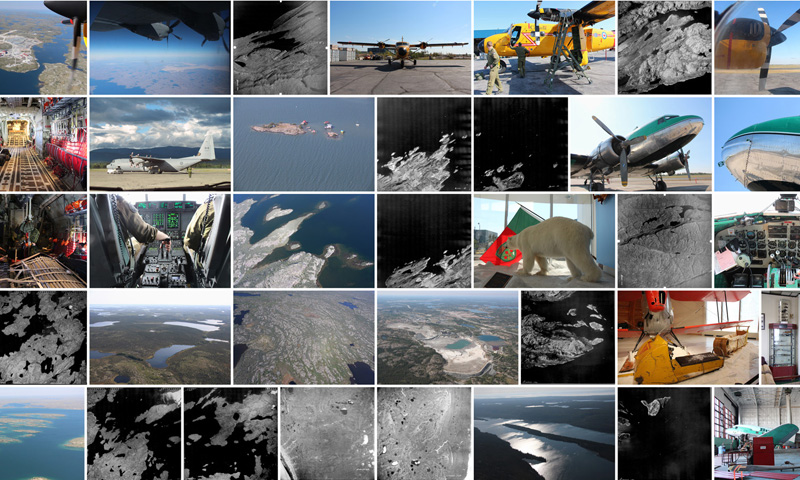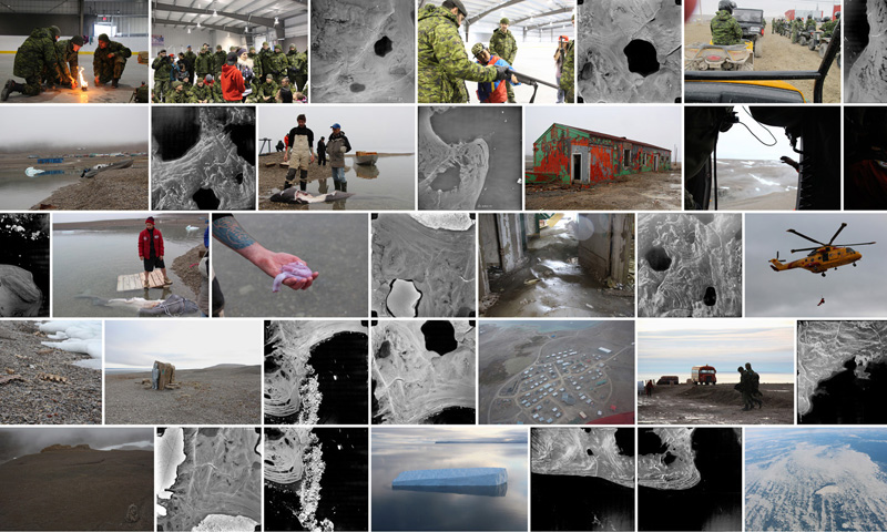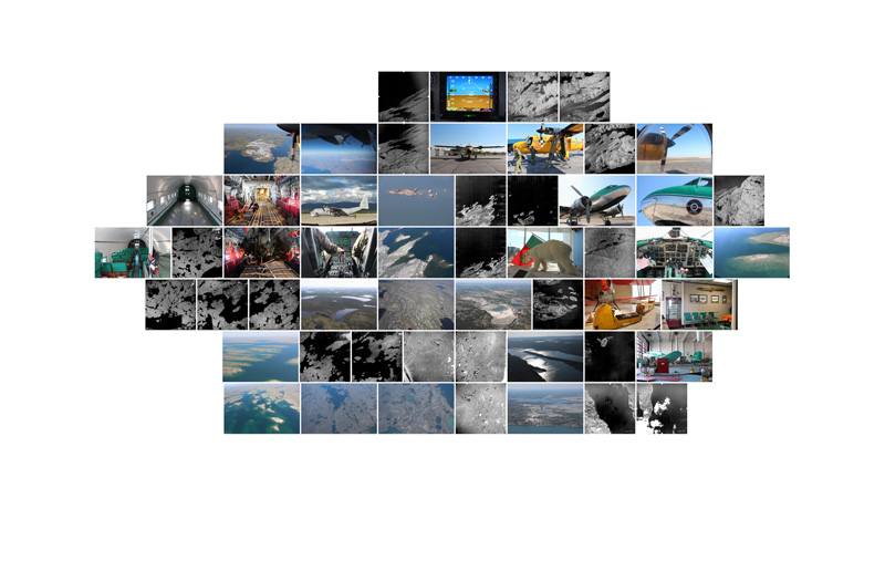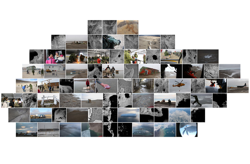 Resolute: Mosaic (detail), 2016. 75in x 150in. 9in x 9in photographs, National Air Photo Library; 9in x 13.5in photographs, Leslie Reid
